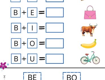- Prima scheda: Lettere, sillabe e immagini sono proposte in disordine. Gli alunni dovranno riconoscerle, leggerle o nominarle.