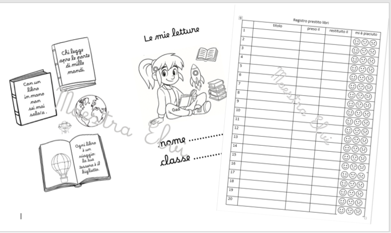 Sul fronte c’è Gea, la protagonista del nostro libro di testo, che ci accompagnerà anche nelle avventure tra le pagine dei libri della biblioteca. 🧒🌍📖                                                                                                                    Sul retro troviamo il registro del prestito, con lo spazio per segnare i libri presi e restituiti, e tre faccine da colorare per dire se il libro è piaciuto o meno.