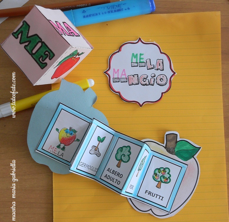 schede didattiche con ciclo vitale della mela a fisarmonica