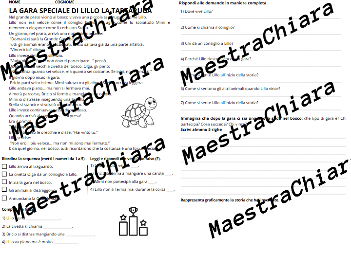 Lettura e comprensione del testo come esercitazione o verifica classe seconda e terza.