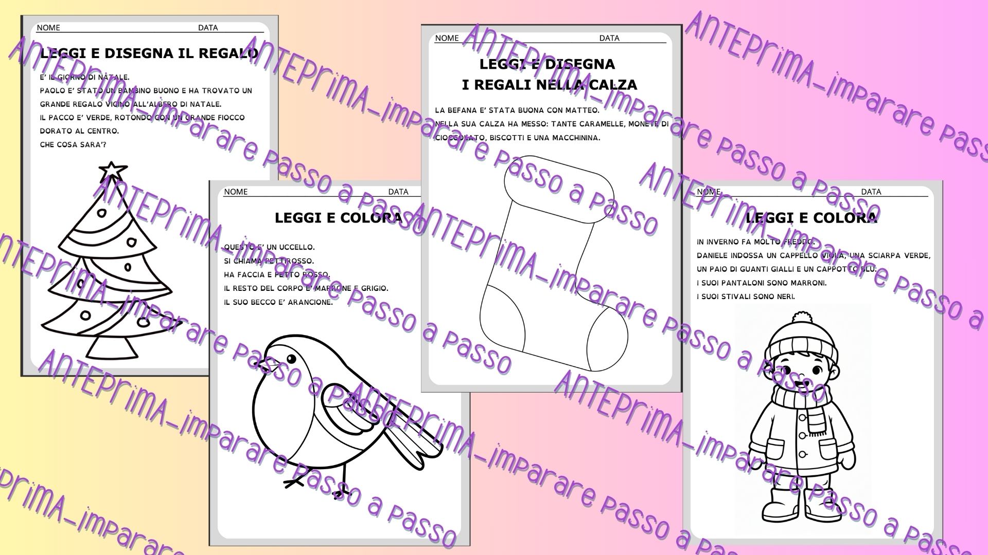 15 brevi storie natalizie in stampatello maiuscolo, scritte con un font chiaro e leggibile, perfetto per: 🌟 bambini che stanno imparando a leggere ❤️ bambini con DSA 🌍 studenti stranieri (Italiano L2) 🏡 attività quotidiane a casa o 🎒 compiti per le vacanze Ogni pagina contiene una piccola storia e un’attività pratica: 👉 Colorare secondo le indicazioni del testo 👉 Disegnare un elemento della storia 👉 Osservare, comprendere e rappresentare Questo lo rende un materiale ideale per sviluppare: Comprensione del testo, motricità fine, lessico natalizio e invernale ❄️ Cosa contiene il PDF? ✔️ 15 storie originali, brevi e in stampatello ✔️ Attività di disegno e coloring guidate dal testo ✔️ Lessico legato a: Natale, inverno, animali, personaggi, tradizioni 🎁 Perché è speciale? ✨ Inclusivo Il font chiaro e grande rende la lettura davvero accessibile. ✨ Versatile Puoi usarlo come: attività giornaliera prima di Natale 🎄 (una storia al giorno!) compito a casa semplice ma significativo 🏡 attività di rinforzo o calm-down in classe lettura guidata in L2 ✨ Zero preparazione! Stampi, consegni, e i bambini iniziano subito. Car* insegnante, questi file sono destinati esclusivamente all’uso personale e per il lavoro con le tue classi o i tuoi bambini. Qualsiasi condivisione o distribuzione a colleghi o altri soggetti causa una violazione del diritto dell’autore. Se ti è piaciuto, segui la mia pagina “Imparare passo a passo” per altre risorse a tema e molto altro!!! Grazie 🧡