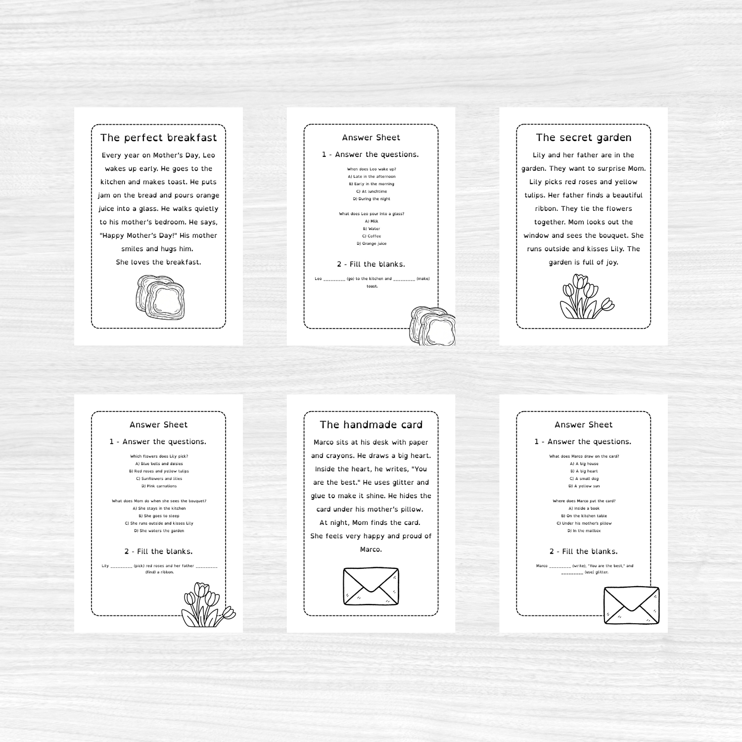 Questo materiale didattico è perfetto per celebrare la Festa della Mamma in classe, offrendo ai tuoi alunni un modo divertente e significativo per migliorare la comprensione della lettura e le abilità grammaticali.