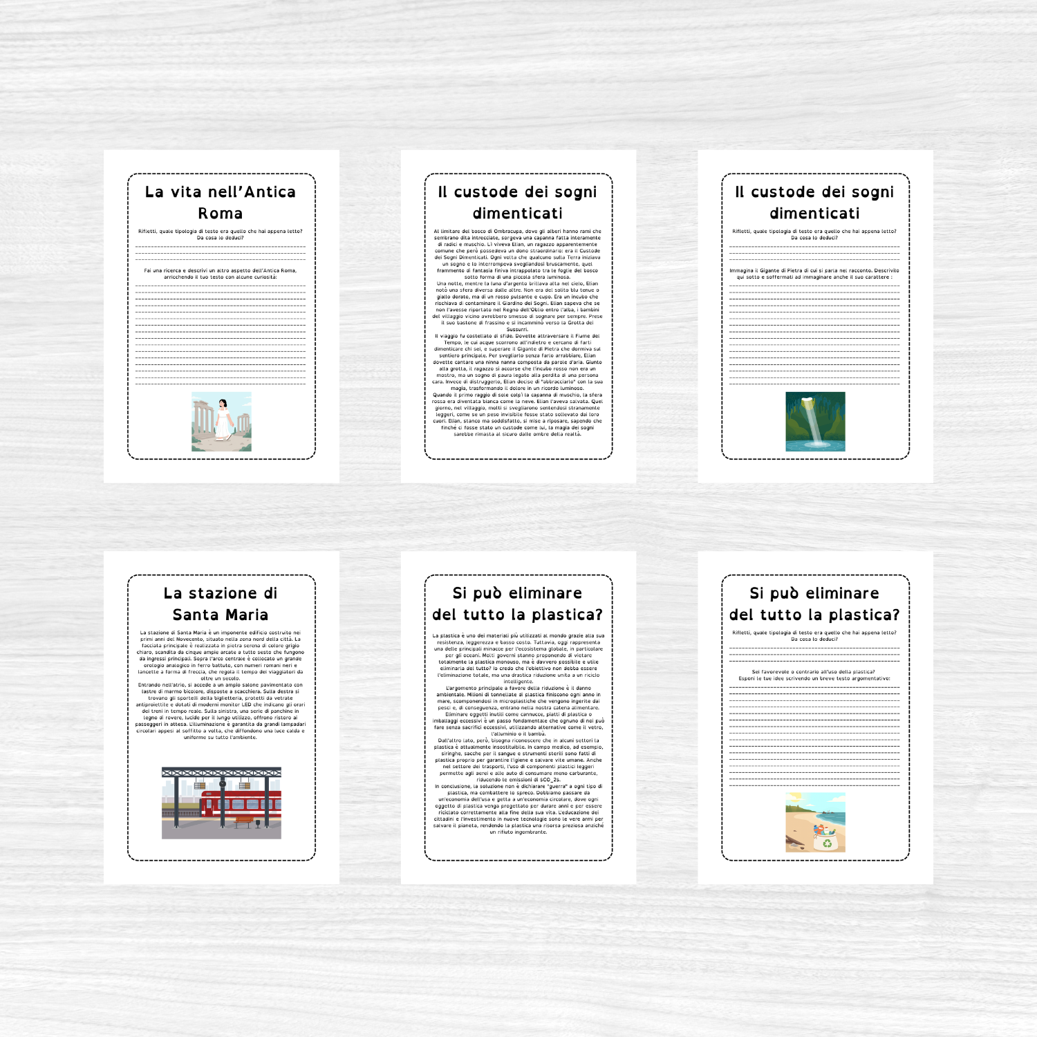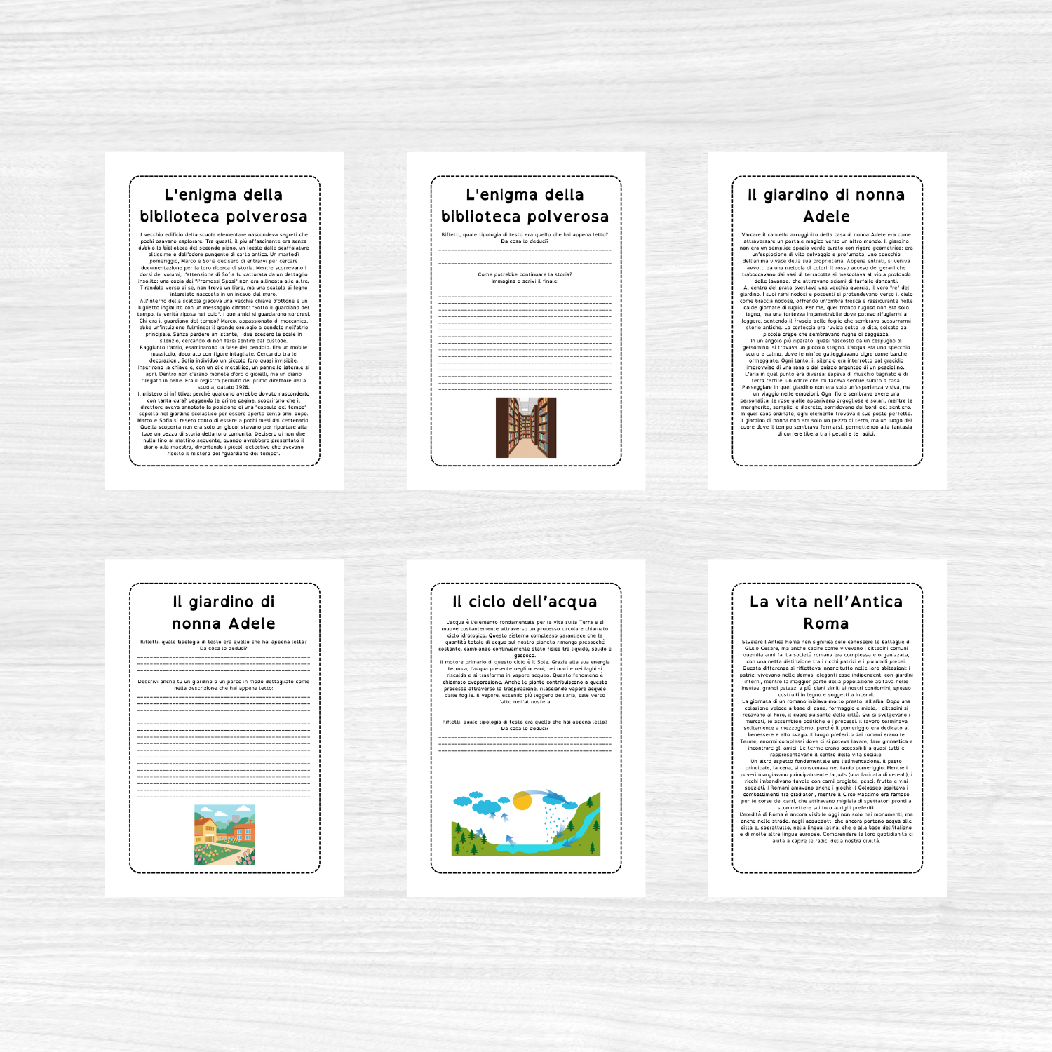 Questo PDF include 12 pagine con letture e comprensioni per la classe quinta della scuola primaria.