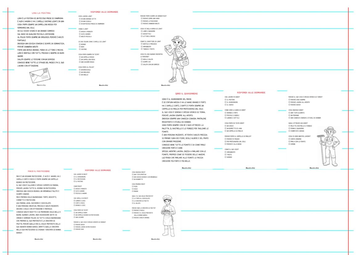 Tre letture in stampato maiuscolo con domande di comprensione del testo a risposta multipla: