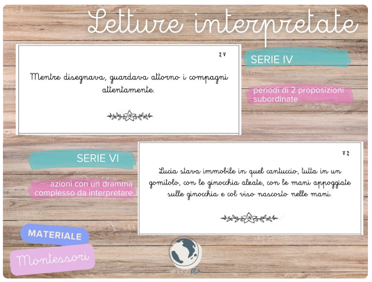 Letture Interpretate originali, ideate da Maria Montessori e presenti ne L’autoeducazione.