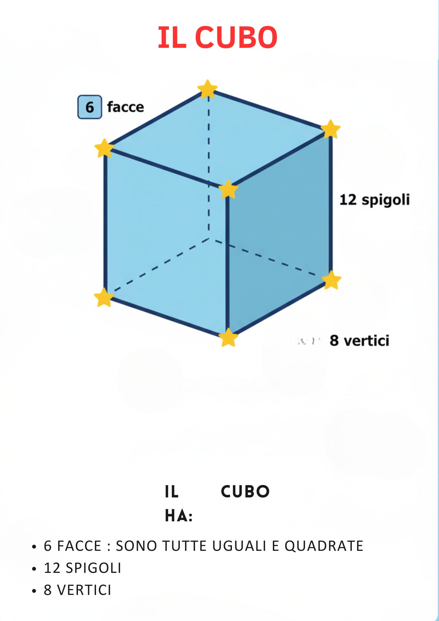 Ogni solido è una lezione completa e visiva, con una struttura chiara e coinvolgente. Per ogni forma, i tuoi alunni troveranno: