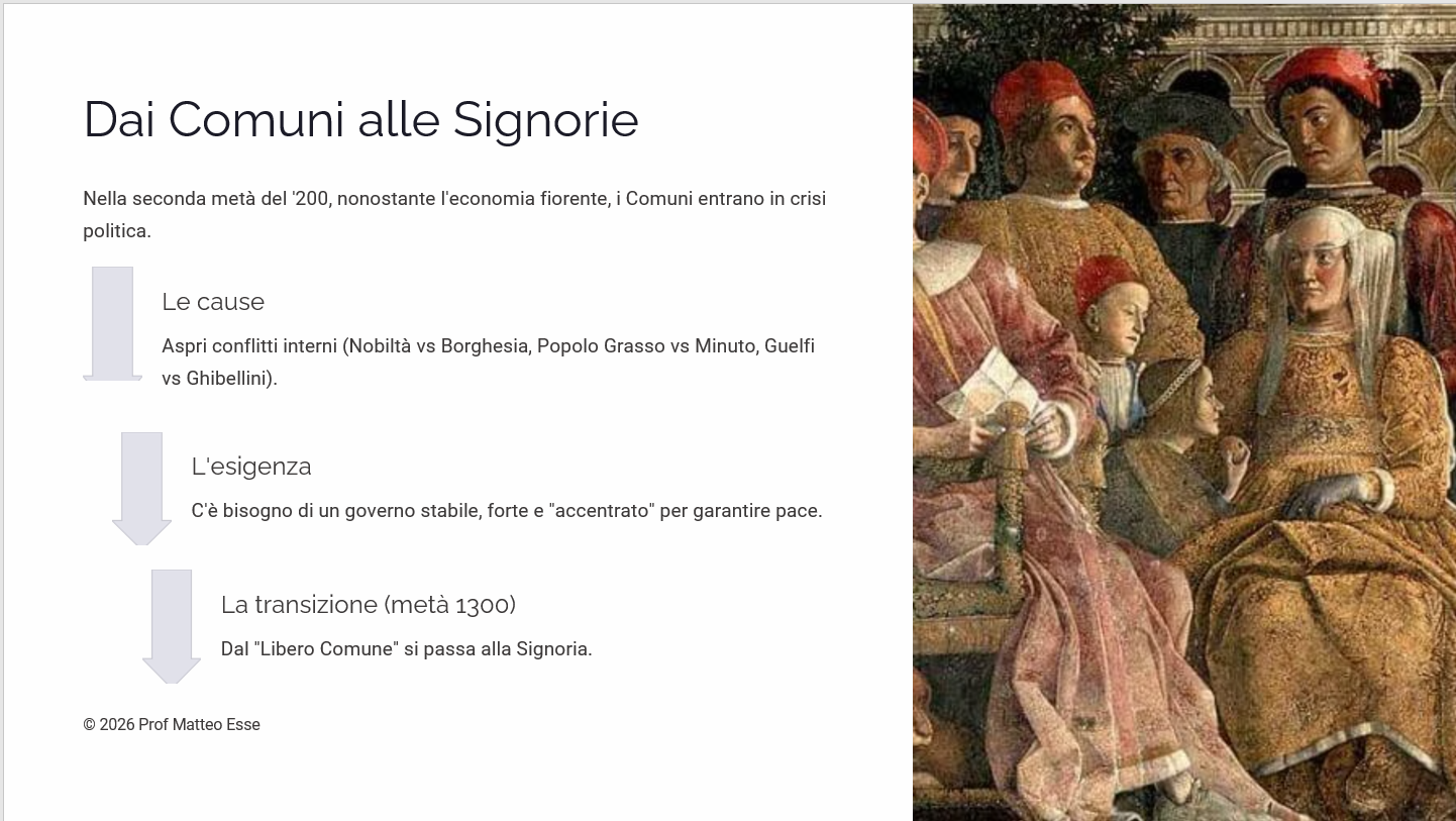 Didattica per Concetti: Analisi della transizione istituzionale dai Comuni ai governi signorili.