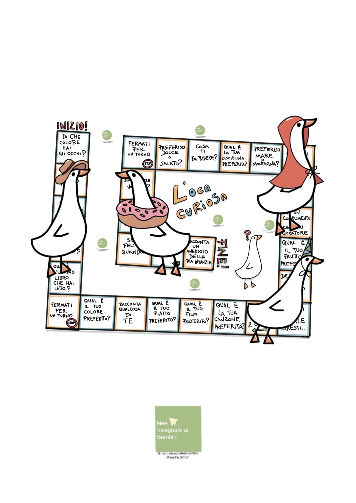 🐥 L’Oca curiosa – invita a riflettere su sé stessi e sugli altri, favorendo la conoscenza reciproca, l’empatia e la costruzione del gruppo classe.