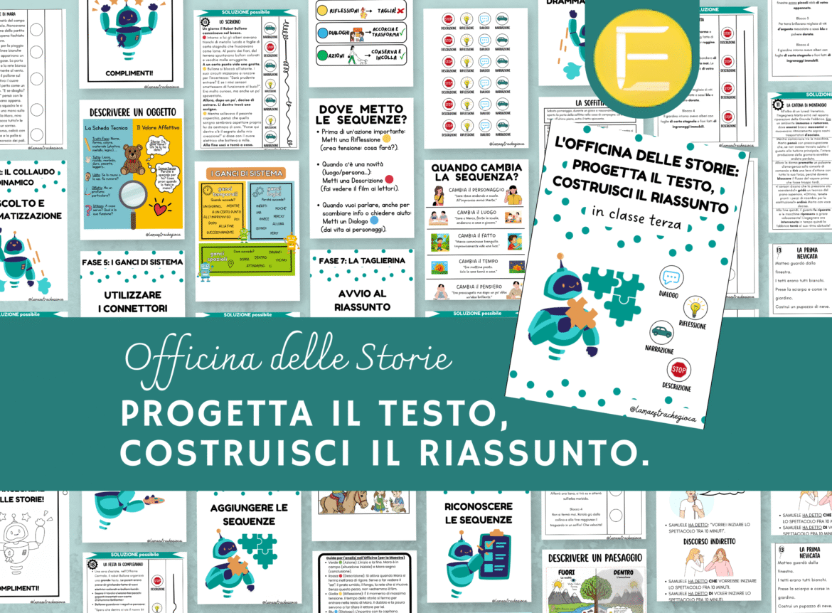 Un maxi-percorso di 231 pagine in formato PDF, progettato specificamente per la classe terza primaria (ma utilizzabile anche in quarta e quinta). Nato dall’esigenza di rendere concreta l’astrazione della scrittura, questo sistema fornisce agli insegnanti un’intera cassetta degli attrezzi per smontare, analizzare e ricostruire la narrazione attraverso un metodo visivo e accattivante.