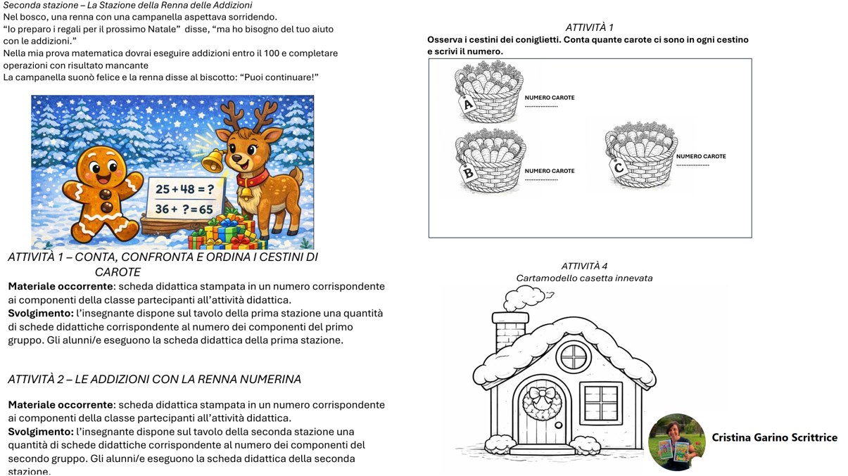 – 5 attività a stazioni sui numeri entro il 100 (addizioni e sottrazioni; precedente e successivo; sequenze di numeri; problemi aritmetici)
