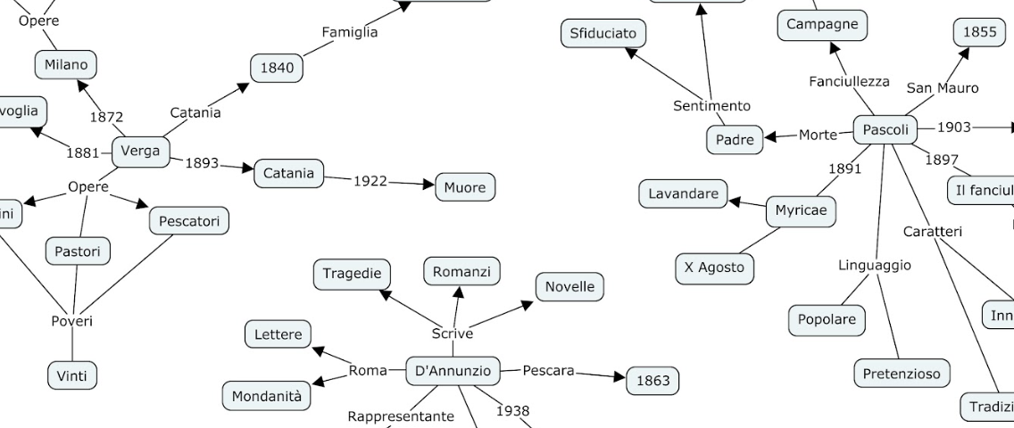 Questa risorsa didattica è stata progettata per offrire una visione d’insieme chiara, rigorosa e visivamente gerarchizzata di tre pilastri della letteratura italiana a cavallo tra il XIX e il XX secolo. Non si tratta di un semplice schema riassuntivo, ma di uno strumento di mediazione didattica volto a facilitare la memorizzazione e la comprensione critica.