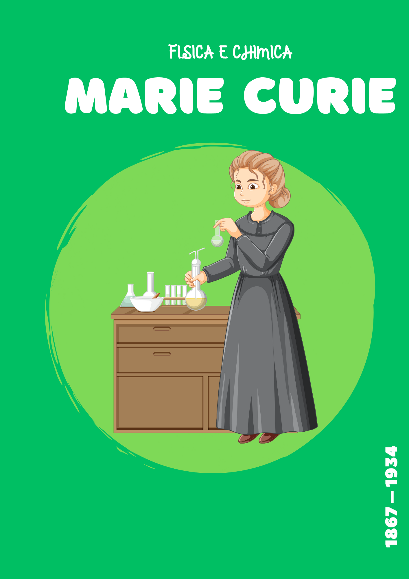 Piccolo libro su Marie Curie da leggere ai bambini dell’infanzia e della primaria, con disegno da colorare
