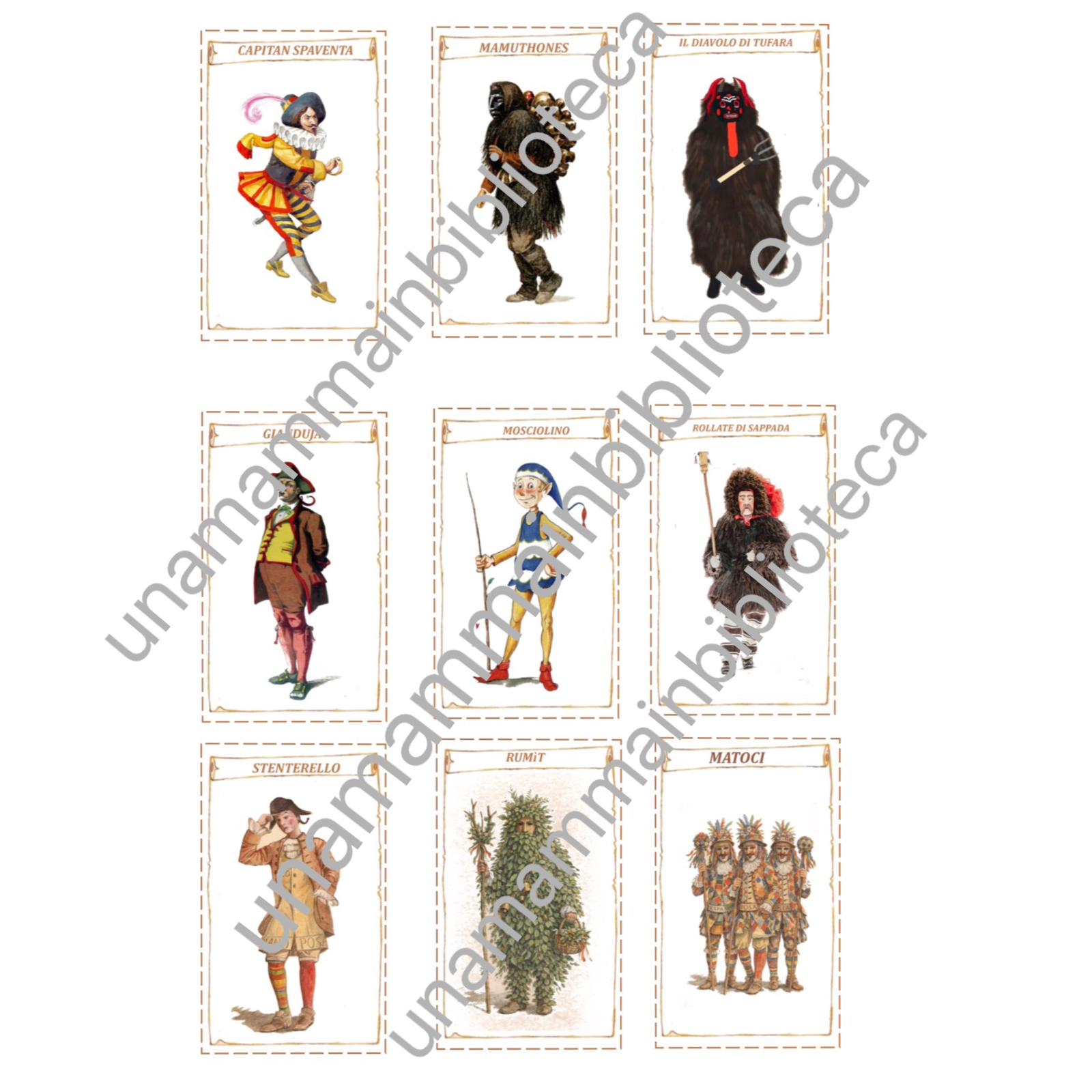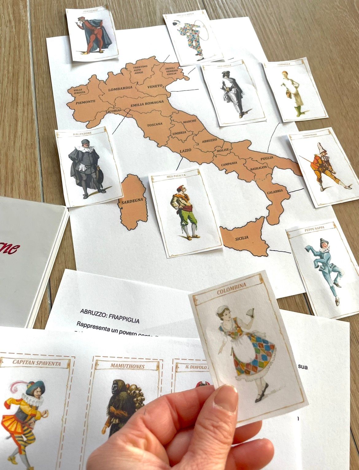 23 tessere con le maschere tradizionali per giocare e collocarle nel modo corretto. ( Formato A3e A4)