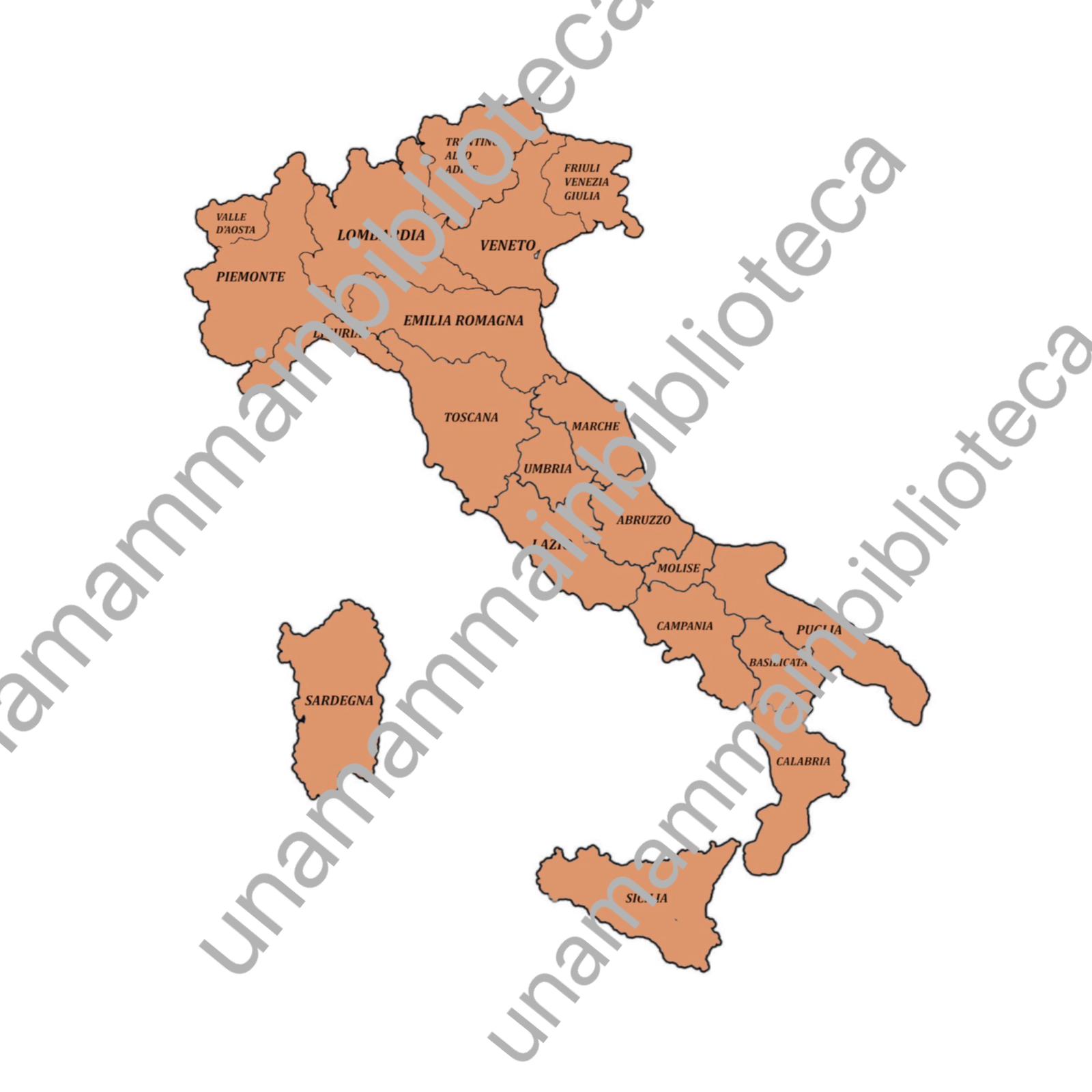 LA CARTINA DELL’ITALIA CON IL NOME DELLE REGIONI.