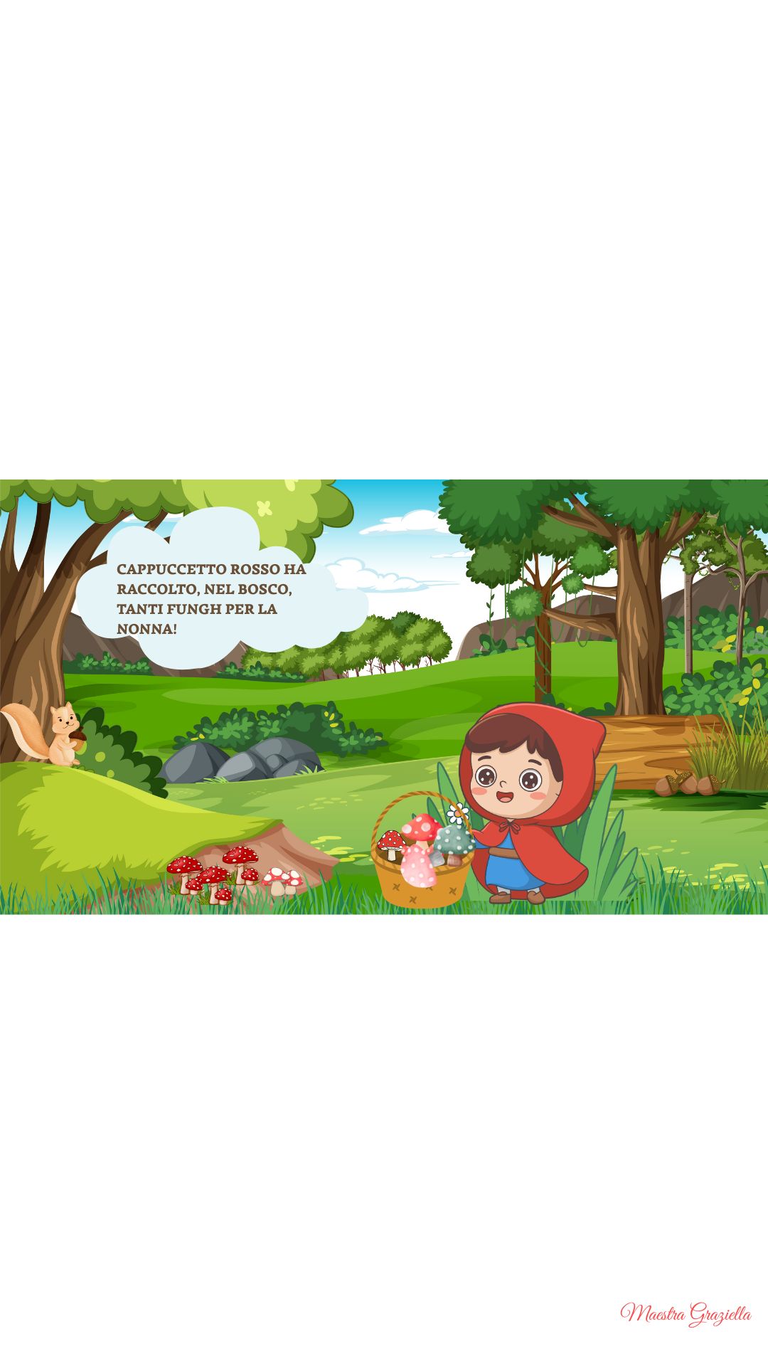 Cappuccetto Rosso ha raccolto tanti funghi nel bosco per la nonna… ma lungo il sentiero qualcuno è caduto!