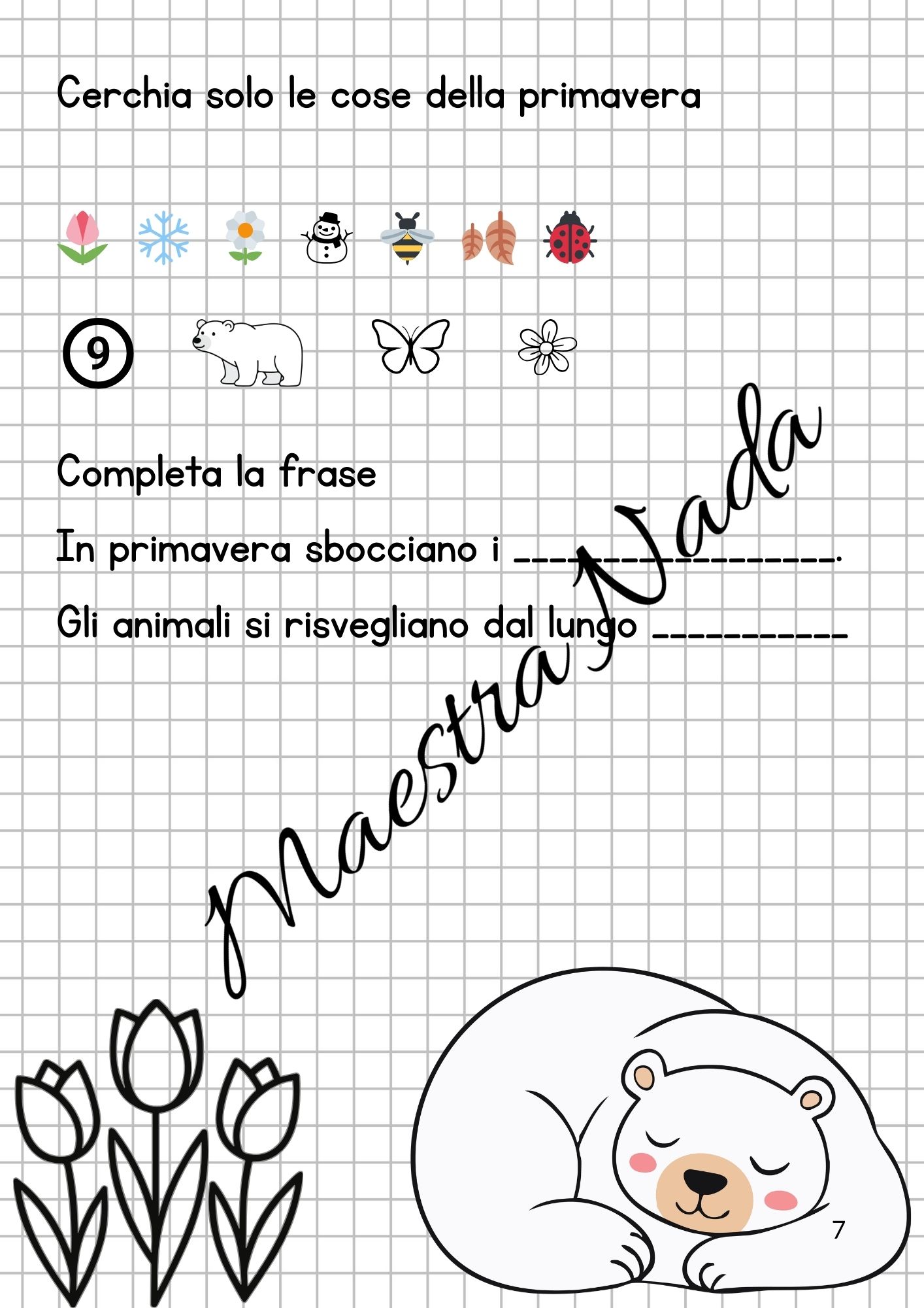 Questo fascicolo propone una raccolta di schede operative e giochi matematici a tema primavera pensati per gli alunni della classe prima della scuola primaria.