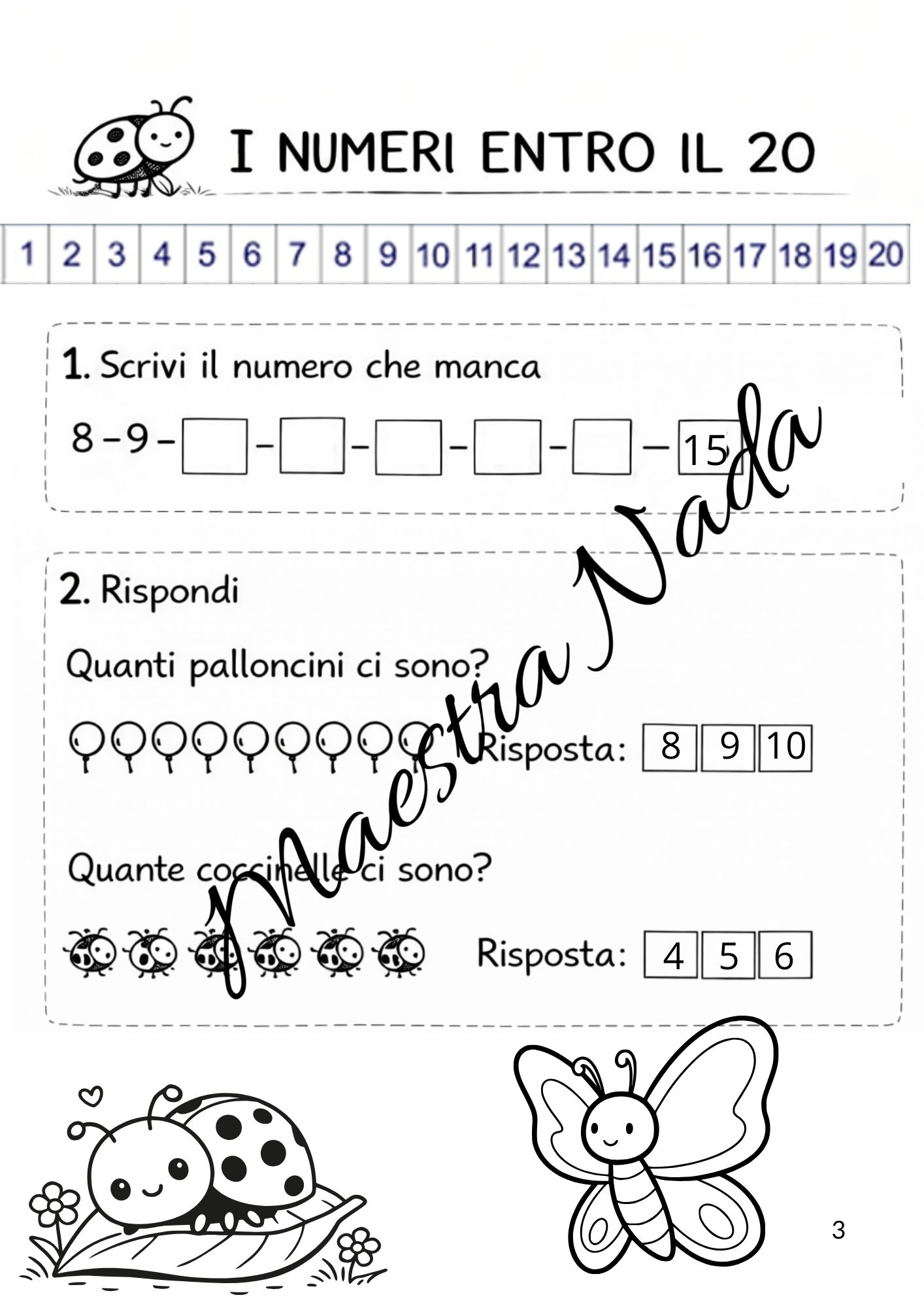 Il materiale è ideale per lavorare sui numeri entro il 20 attraverso esercizi semplici e divertenti.