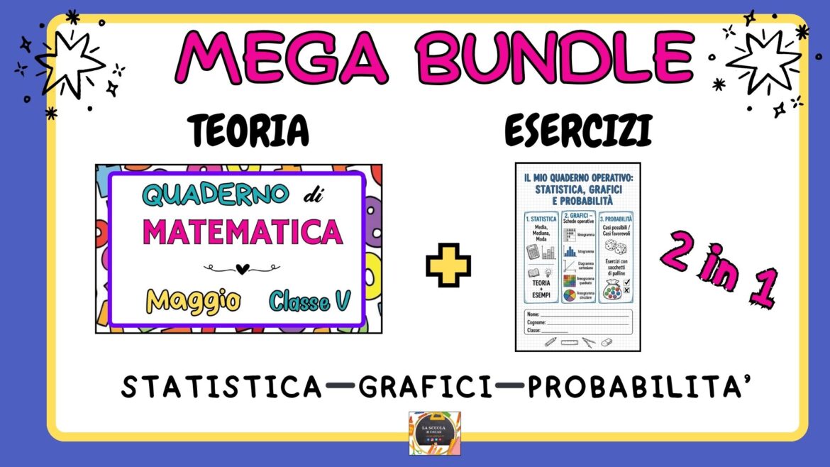 MEGA BUNDLE – QUADERNO DI MATEMATICA – MAGGIO – CL. 4^ e 5^ – Statistica, Grafici e Probabilità (Teoria Svolta + Quaderno Operativo)Digitale