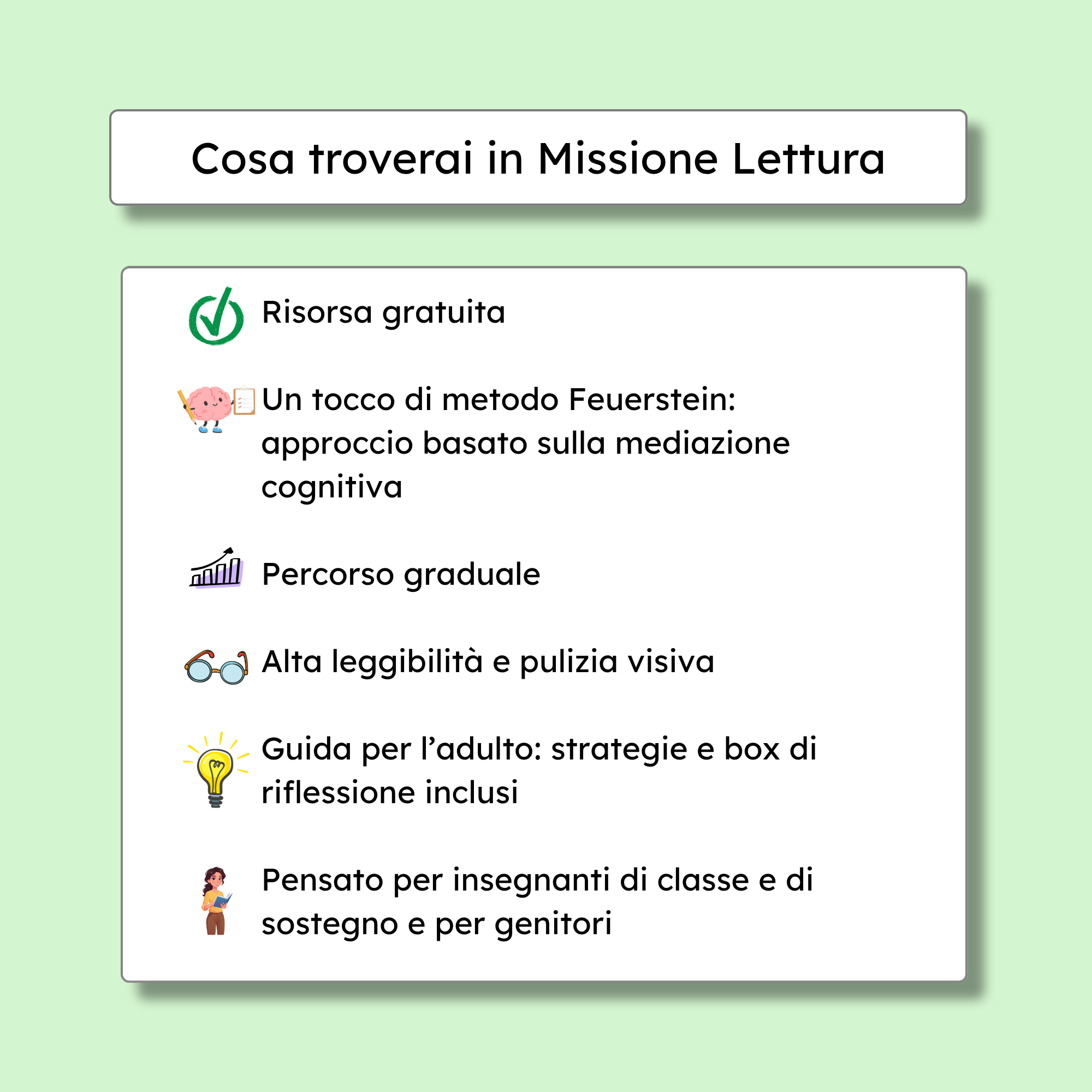 Vuoi testare l’efficacia della mediazione cognitiva nel potenziamento della letto-scrittura? Questa risorsa gratuita è un assaggio esclusivo del metodo “Missione Lettura”.