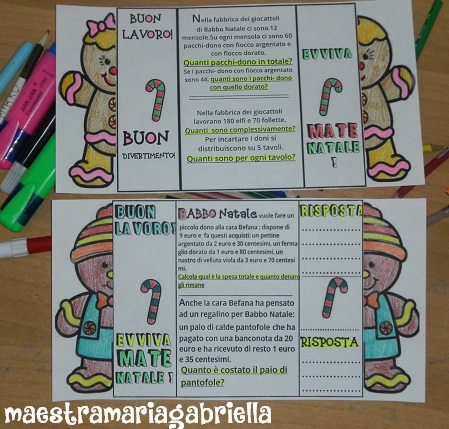 due schede didattiche con testo problemini natalizi in soggetti pop up