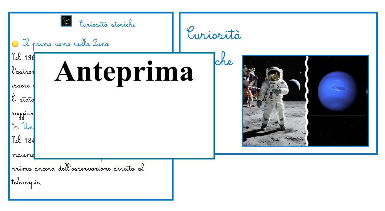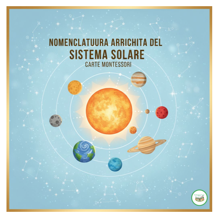 🚀 Nomenclatura Arricchita del Sistema Solare – Carte Montessori Scopri il Sistema Solare con un approccio scientifico, concreto e visivo! 🌟 Perché scegliere questo materiale? Carte realistiche e colorate, perfette per bambini dai 5 anni in su Testi sintetici e scientifici, adatti all’apprendimento autonomo e guidato Approccio Montessori, che stimola osservazione, memoria e curiosità scientifica Include pianeti, Sole, corpi celesti minori e curiosità scientifiche 🪐 Cosa contiene il set Carta del Sistema Solare: panoramica completa con orbite e corpi principali Carta del Sole: il cuore del Sistema Solare, fonte di energia e gravità Carte dei pianeti: Mercurio, Venere, Terra, Marte, Giove, Saturno, Urano, Nettuno Carta dei corpi celesti minori: pianeti nani, asteroidi, comete, satelliti naturali, polveri interplanetarie e meteoroidi Carte Curiosità: Apollo 11, Nettuno, Plutone, Venere, Mercurio, Giove 🌟 Obiettivi didattici Conoscere Sole, pianeti e altri corpi celesti Comprendere dimensioni, distanza dal Sole e tipologia dei pianeti Sviluppare osservazione, classificazione e ragionamento logico Stimolare curiosità scientifica e amore per l’astronomia 📚 Come usarlo Esplorazione individuale o in piccolo gruppo Abbinamento e ordinamento delle carte secondo caratteristiche Discussioni guidate e attività di rielaborazione creativa Confronti e carte comparative di dimensioni, distanza e tipo di pianeta 📝 Nota pedagogica Montessori Stimola l’apprendimento concreto e visivo Favorisce autonomia e memorizzazione Aiuta a sviluppare percezione spaziale, osservazione e senso scientifico Le curiosità scientifiche mostrano che la scienza evolve e si aggiorna ✨ Bonus Materiale pronto per stampa Montessori Formato comodo e resistente, perfetto per la classe o per casa Carte coerenti tra loro, ideali per giochi educativi e attività di approfondimento 💡 Ideale per insegnanti, educatori e genitori che vogliono avvicinare i bambini all’astronomia con metodo Montessori.