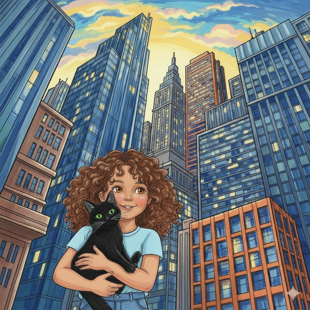 Un racconto tenero e brillante che segue una bambina curiosa e il suo gatto tra tram, strade e sogni alti quanto i palazzi. Con sguardo leggero, il libro parla di coraggio, amicizia e piccole scoperte che illuminano la città