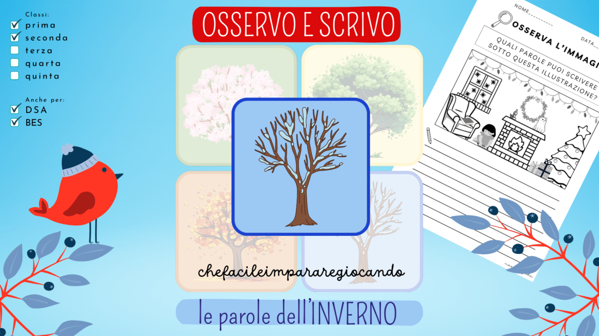 TRE SCHEDE OPERATIVE A TEMA INVERNALE: OSSERVO, SCRIVO, LEGGO E DISEGNO – CLASSI PRIMA E SECONDA – ALUNNI NAI – RISORSA GRATUITA!!