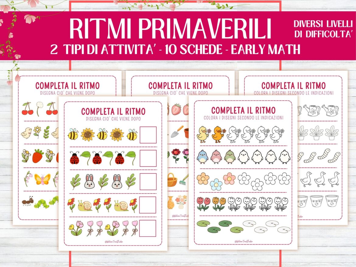 🌸Questo pacchetto di modelli primaverili stampabili aiuta i bambini della scuola dell’infanzia e della prima elementare a esercitarsi con le prime nozioni di matematica e sequenziamento, attraverso coinvolgenti attività a tema primaverile.