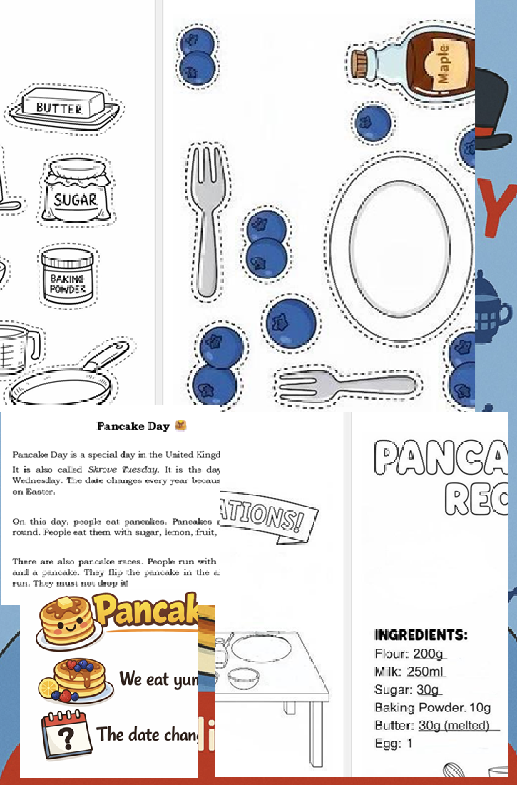 Questo materiale propone un percorso completo e graduale sul Pancake Day, adattabile a diversi livelli di competenza linguistica.