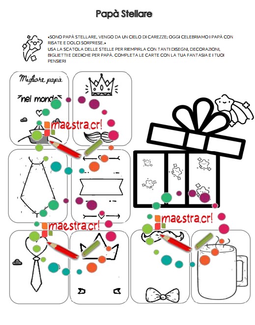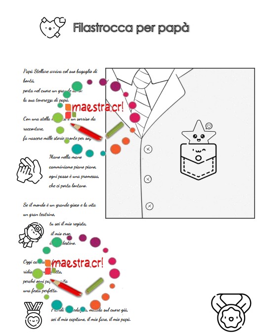 Questo pacchetto didattico è pensato per accompagnare gli alunni e le alunne in un percorso creativo dedicato ai papà. Attraverso attività di lettura, scrittura e gioco, i bambini potranno raccontare, ringraziare e mostrare affetto in modo originale e divertente.