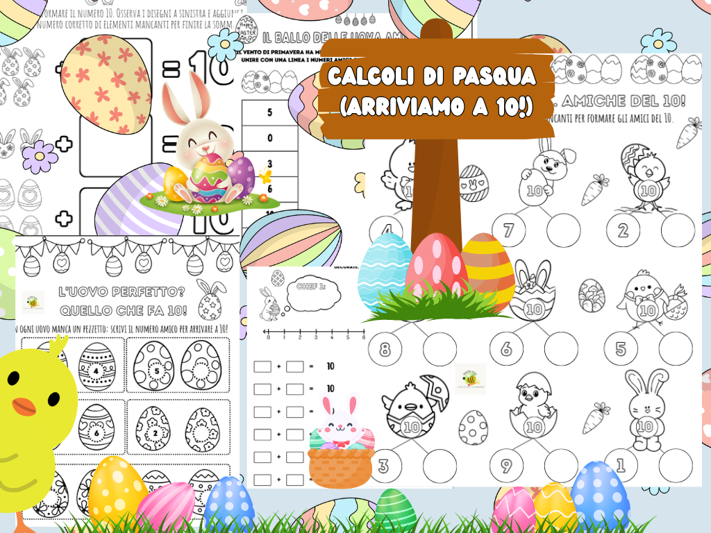 Insegnare gli “Amici del 10” non è mai stato così dolce! Questo kit è stato pensato per trasformare il calcolo mentale in un’avventura pasquale, alternando momenti di logica, disegno e lavoro cooperativo. 6 schede didattiche.