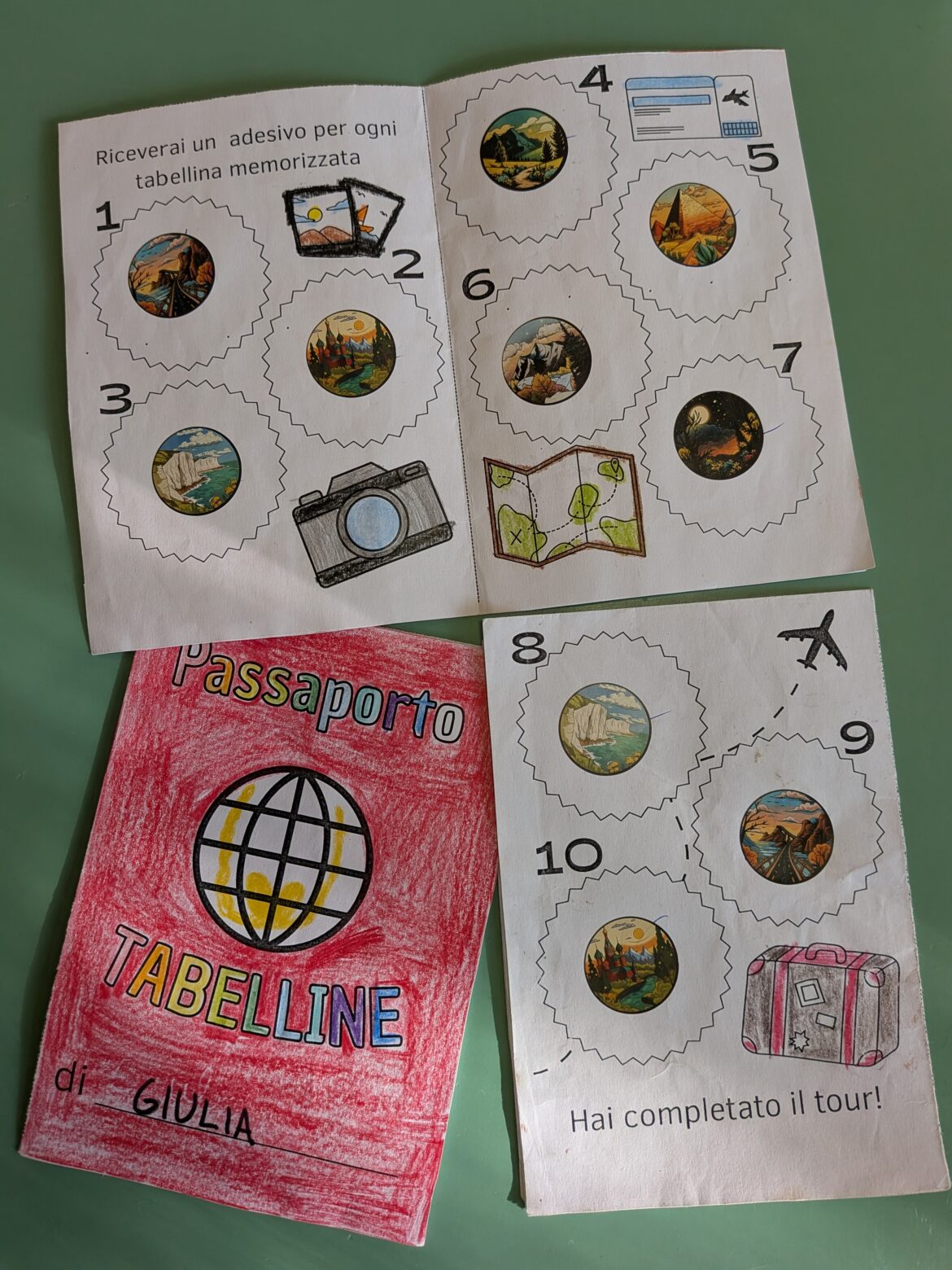 Questo simpatico strumento segnerà le tappe del viaggio nel mondo delle tabelline! Ad oggi traguardo raggiunto si ottiene uno sticker k un timbro incentivando motivazione ed impegno.