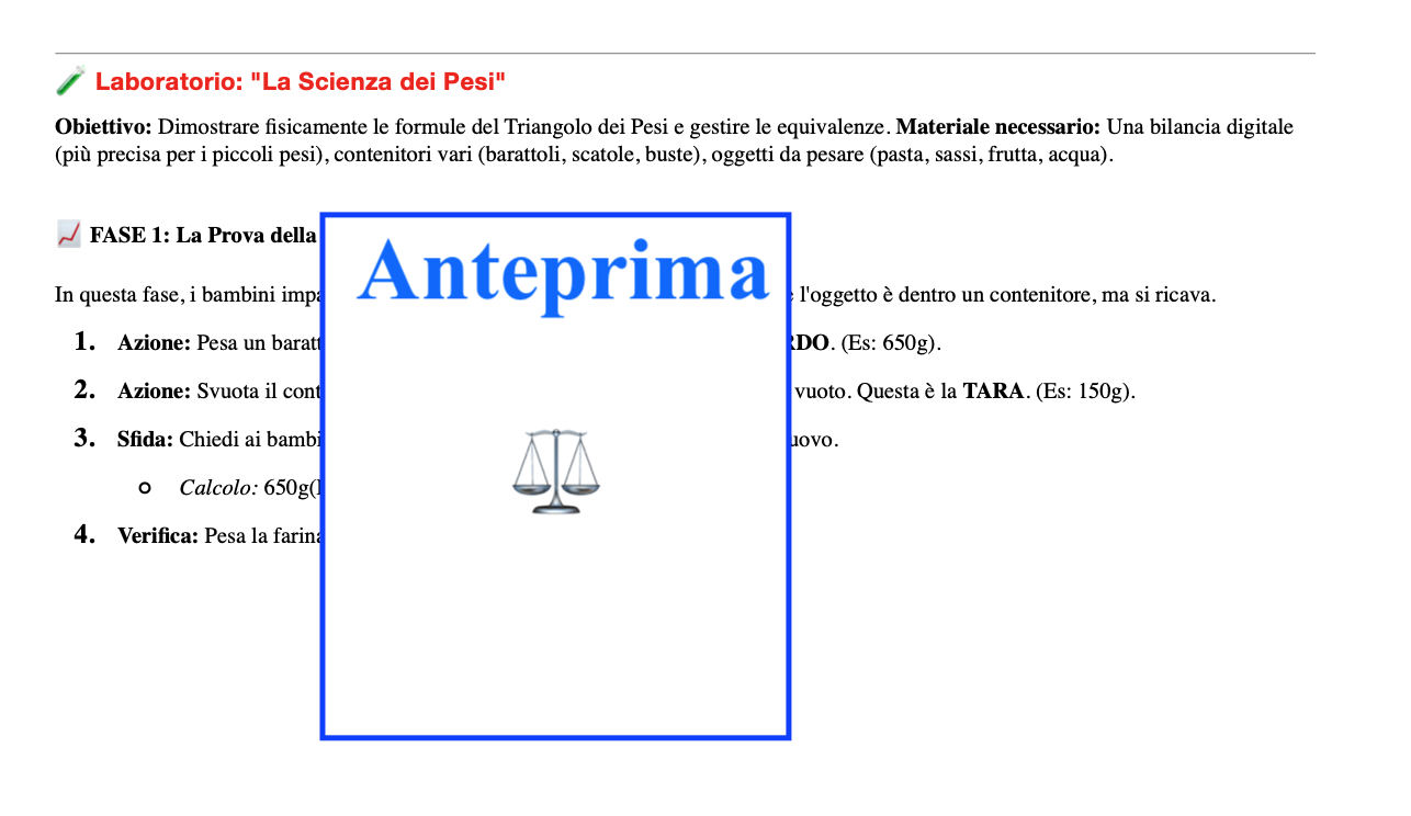 Il Triangolo Magico dei Pesi diventa un mediatore didattico stabile: i bambini imparano a “coprire” la grandezza incognita e scegliere l’operazione corretta in autonomia. -