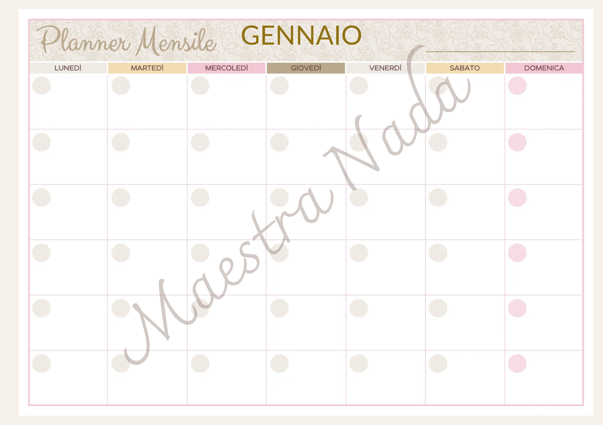🗓 Tipologia: Planner settimanale non datato