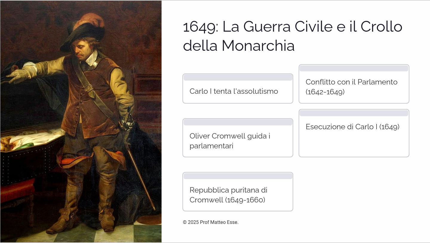 Lo scontro tra Carlo I Stuart e il Parlamento (Guerra Civile).