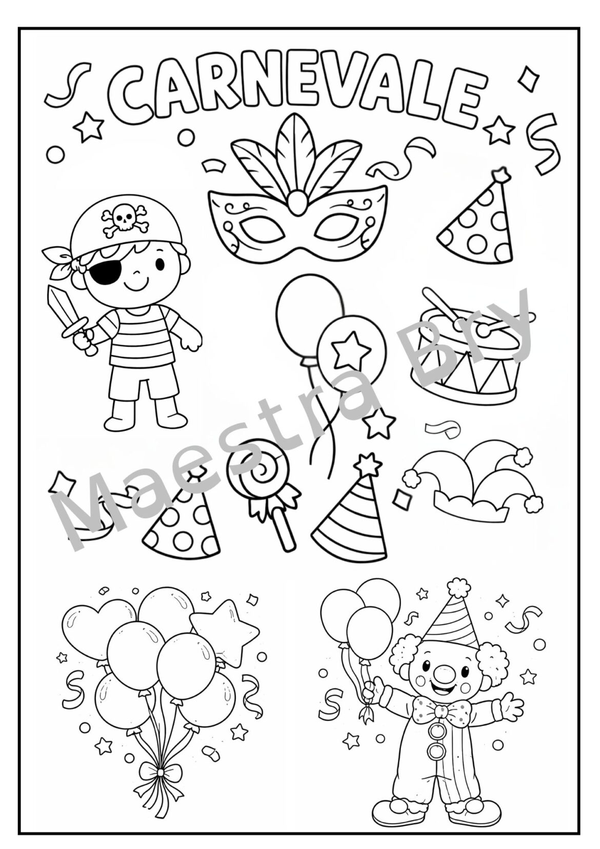 Poster collaborativo composto da 16 pagine da stampare, assemblare e far colorare ai bambini per decorare l’aula in vista del Carnevale