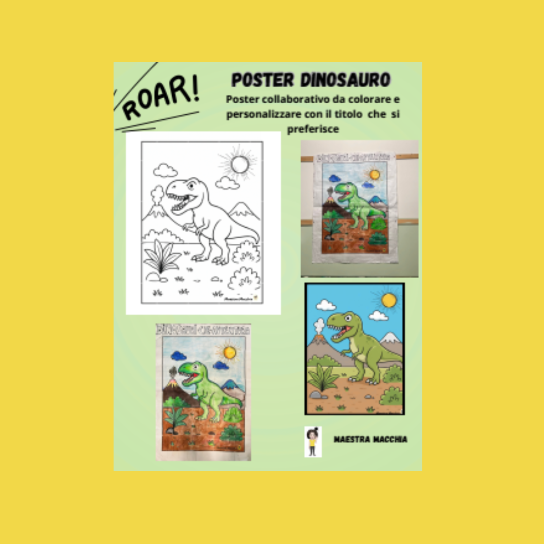 un poster collaborativo dei dinosauri adatto principalmente a una classe terza per arte e immagine
