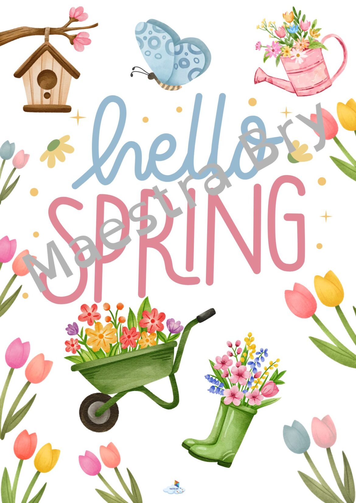 Poster composto da 16 pagine da stampare e comporre con la scritta HELLO SPRING