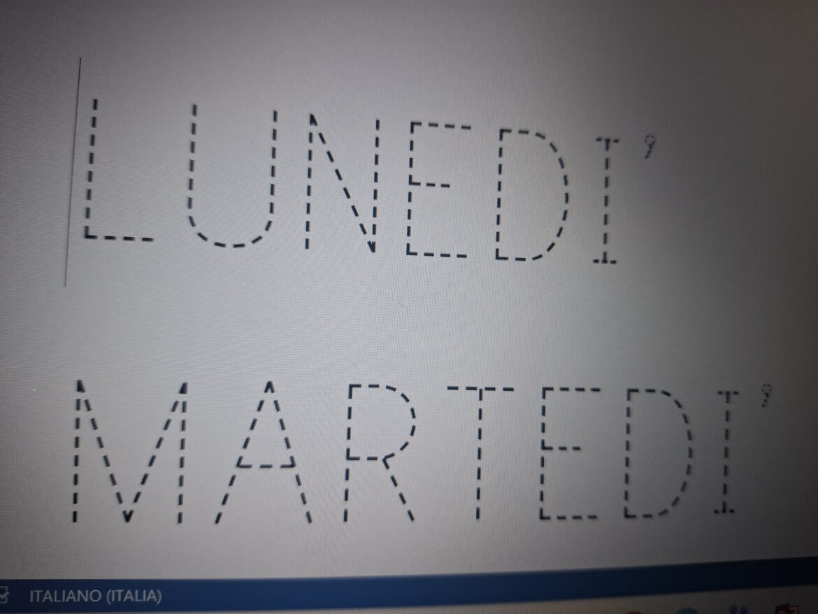 Scheda didattica pregrafismo sui giorni della settimana per classe prima di scuola primaria.