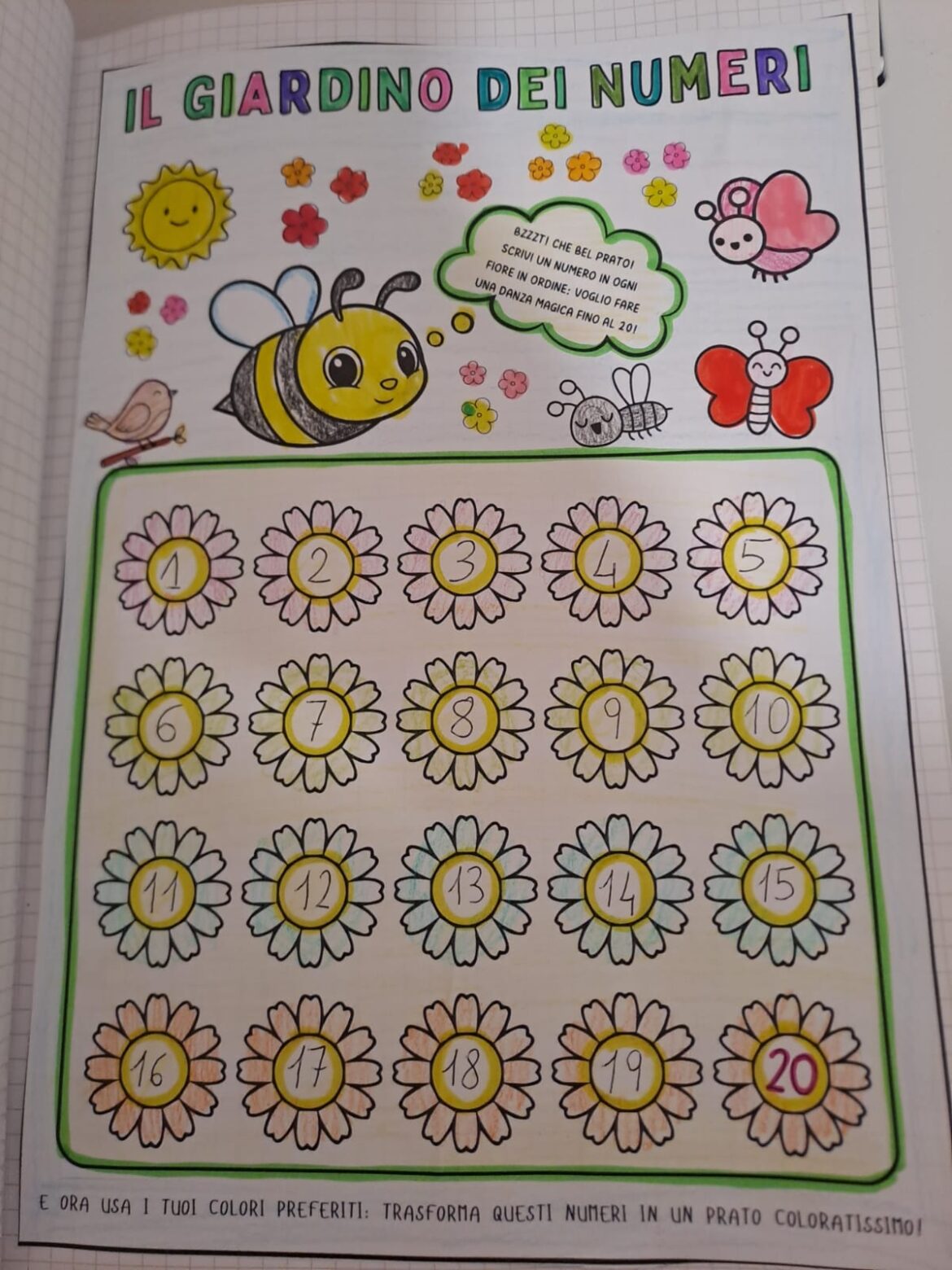 Imparare i numeri è un’avventura colorata! 🐝🌸 Nel “Giardino dei Numeri” abbiamo ripassato l’ordine da 1 a 20 con un po’ di magia e tanti colori. Piccoli passi per grandi scoperte! 🖍️✨