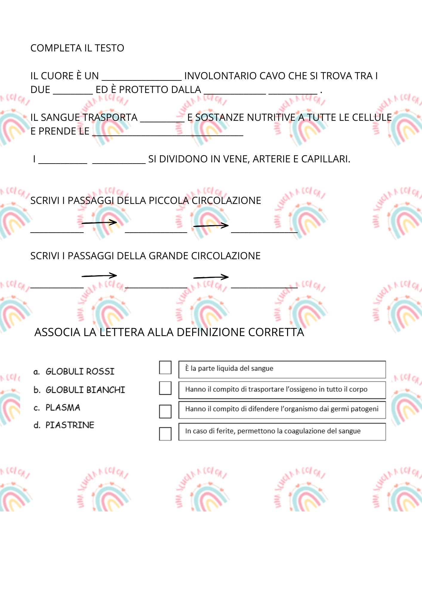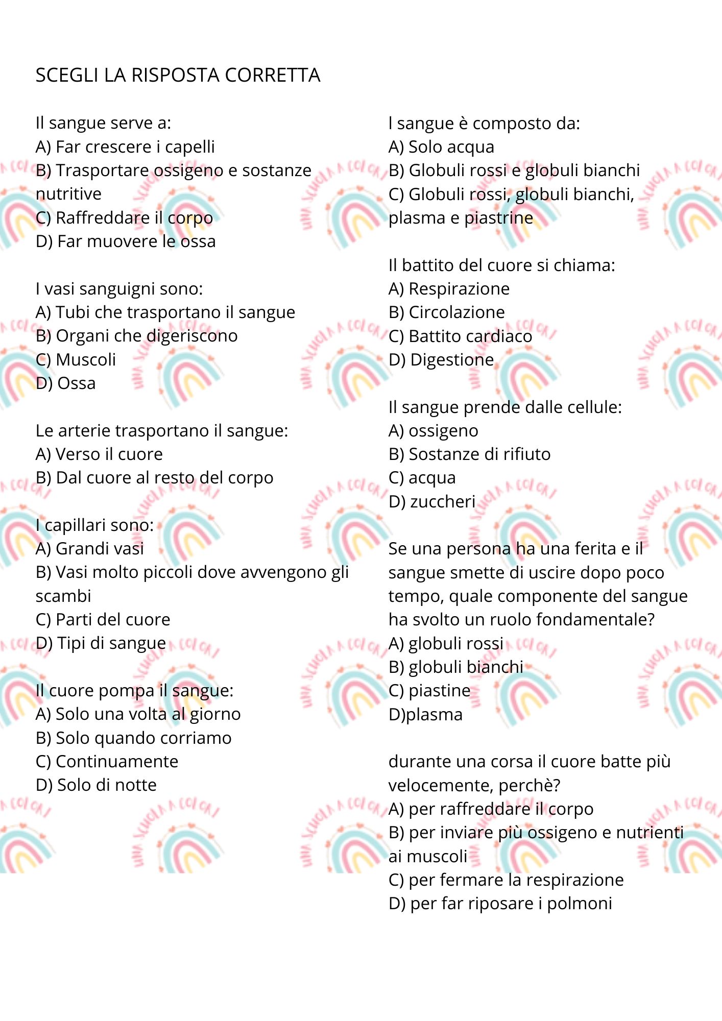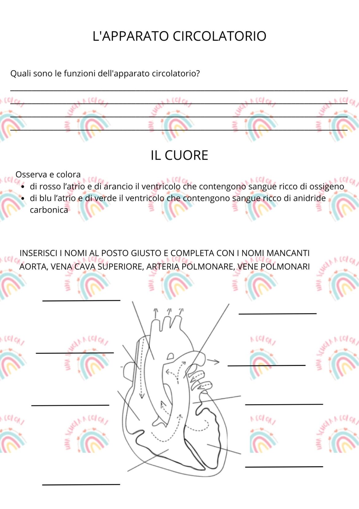Prova di verifica sull’apparato circolatorio per classe quinta primariaDigitale