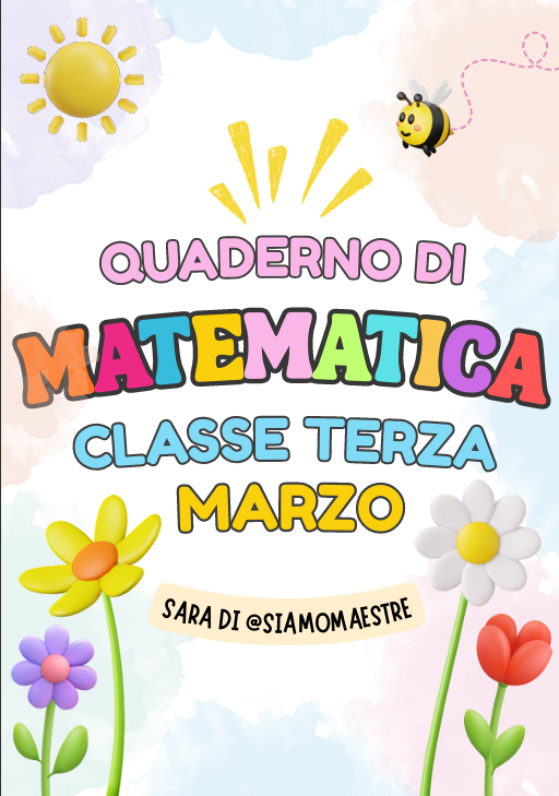 Ecco il quaderno di matematica di marzo in classe terza. Gli argomenti sono: frazioni con la pizza, frazioni complementari, frazioni decimali e numeri decimali, euro, angoli, attività di logica, quattro operazioni in colonna, operazioni rapide a mente, risoluzione di problemi e analisi dei dati (utili, inutili, mancanti e nascosti). In questo mese come compito a casa darò sempre ai bambini operazioni in riga e in colonna, in modo da rinforzare continuamente la competenza nel calcolo.