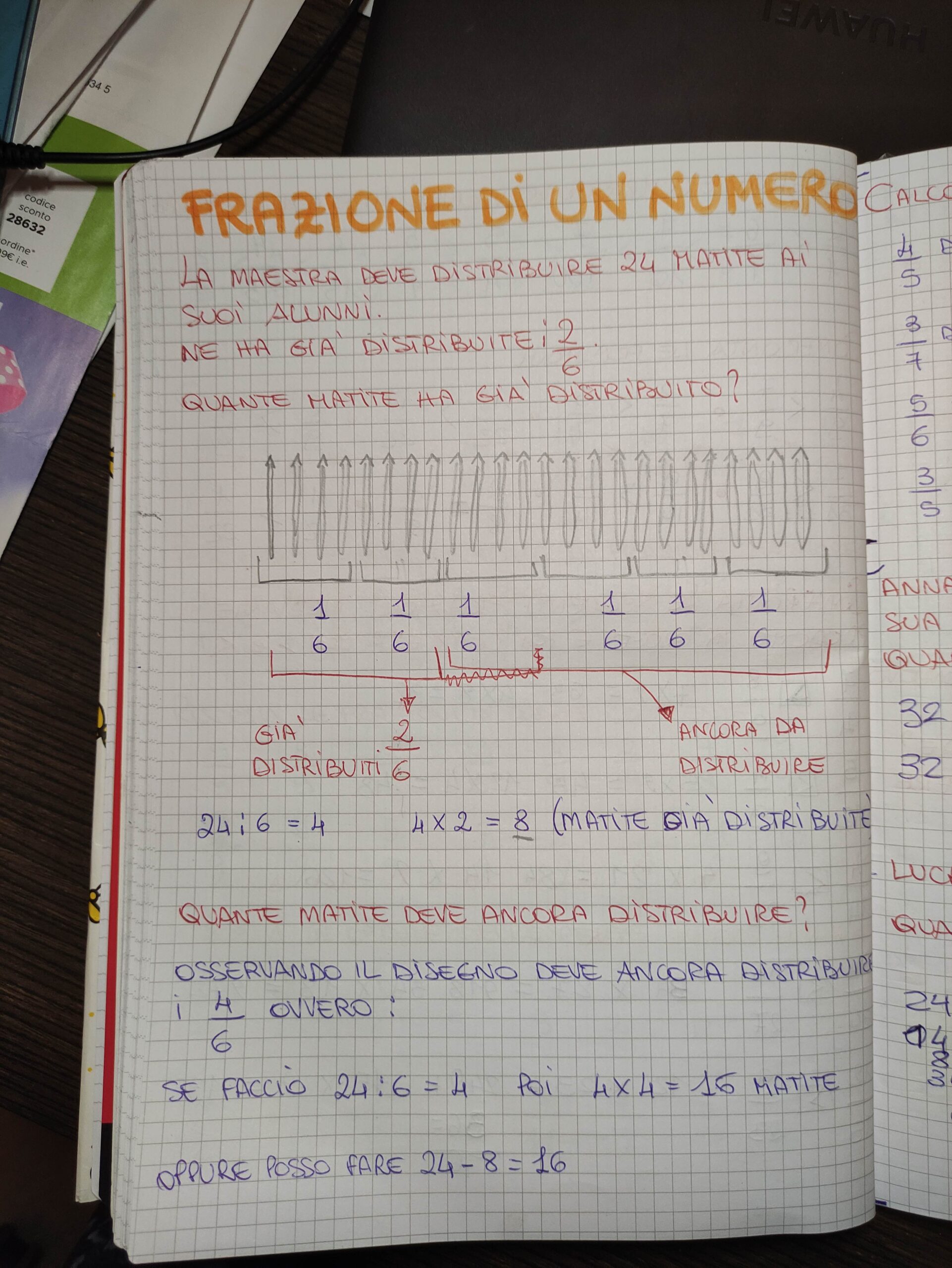Questo quaderno di 21 pagine scritte a mano è interamente focalizzato sul mondo delle Frazioni, trattate con un approccio pratico e visivo che aiuta a superare le tipiche difficoltà di questo argomento.