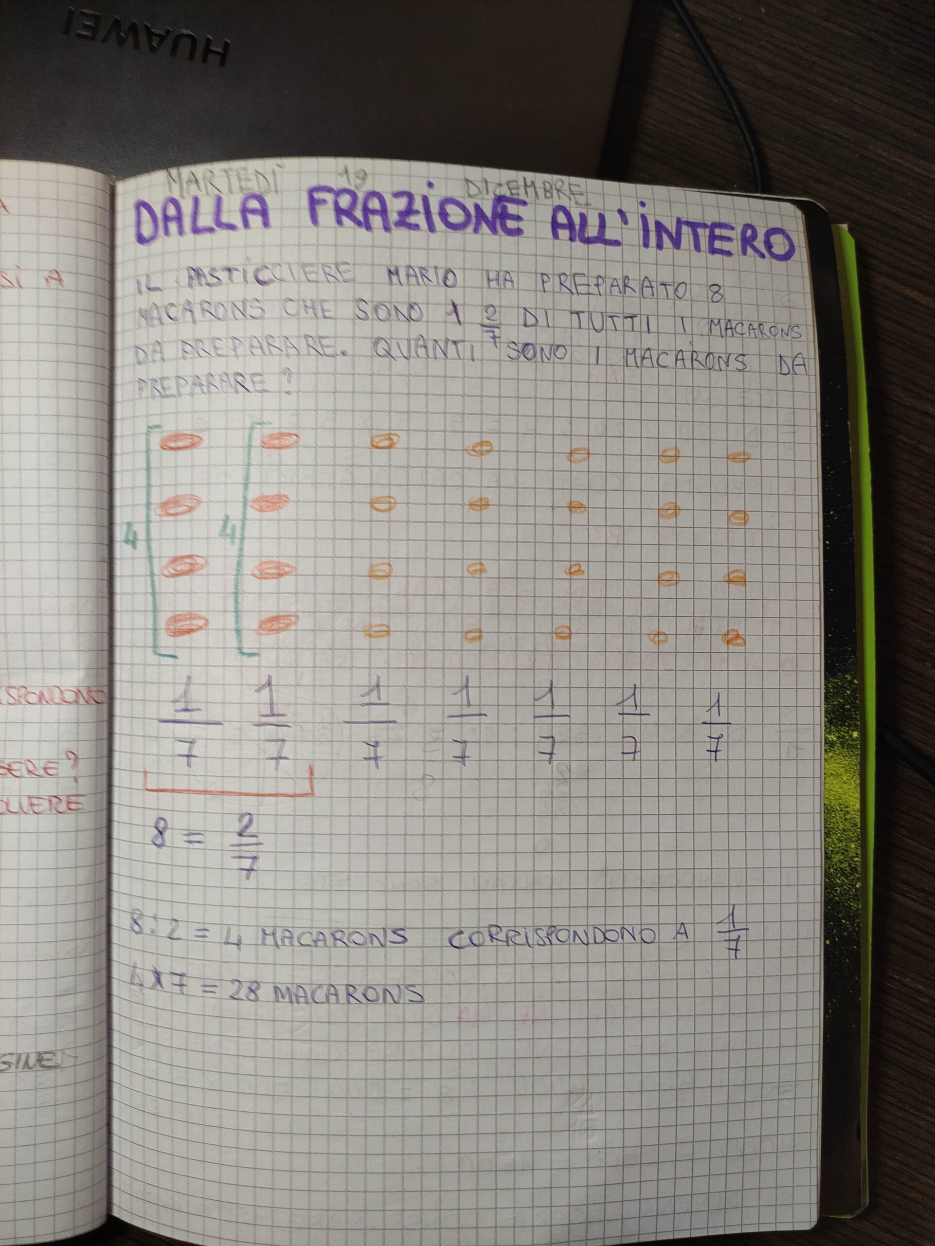 Quaderno di Matematica Classe V – DICEMBRE – Le Frazioni (Teoria + Esercizi Svolti).