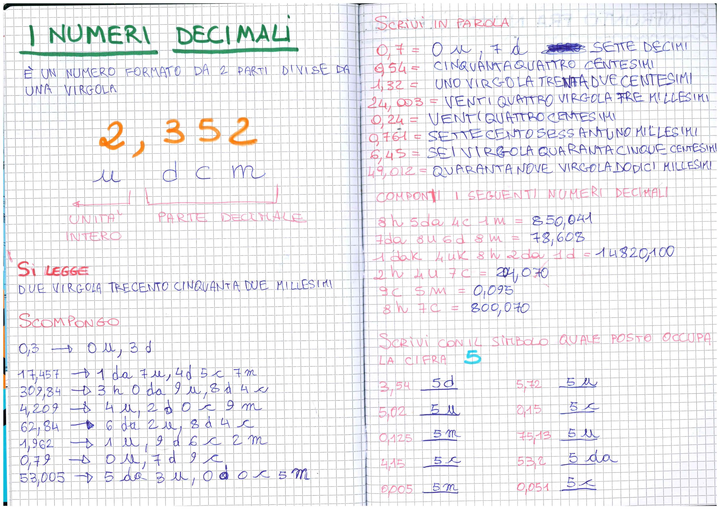 I numeri decimali: la struttura del numero, il valore posizionale e l’importanza della virgola.