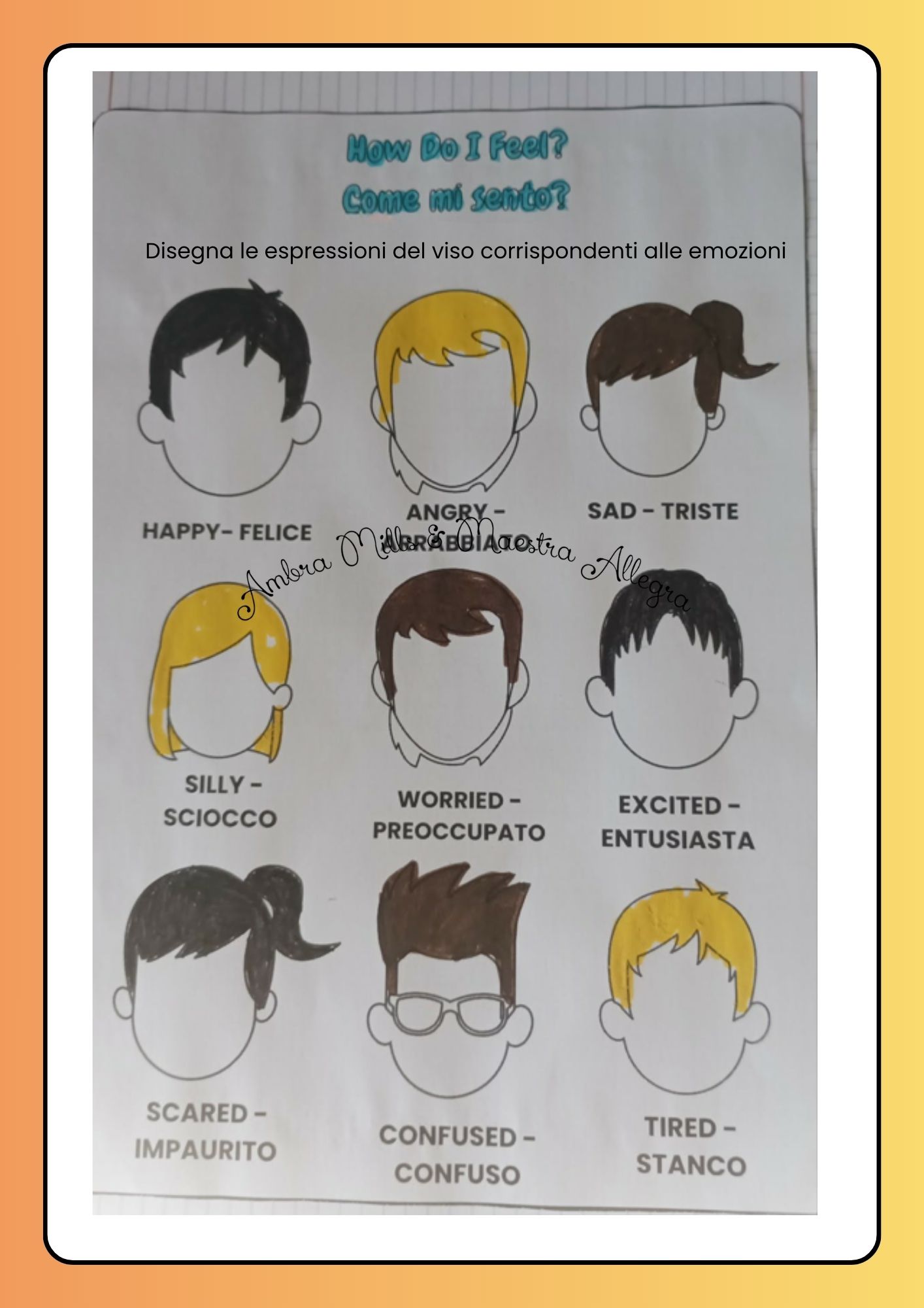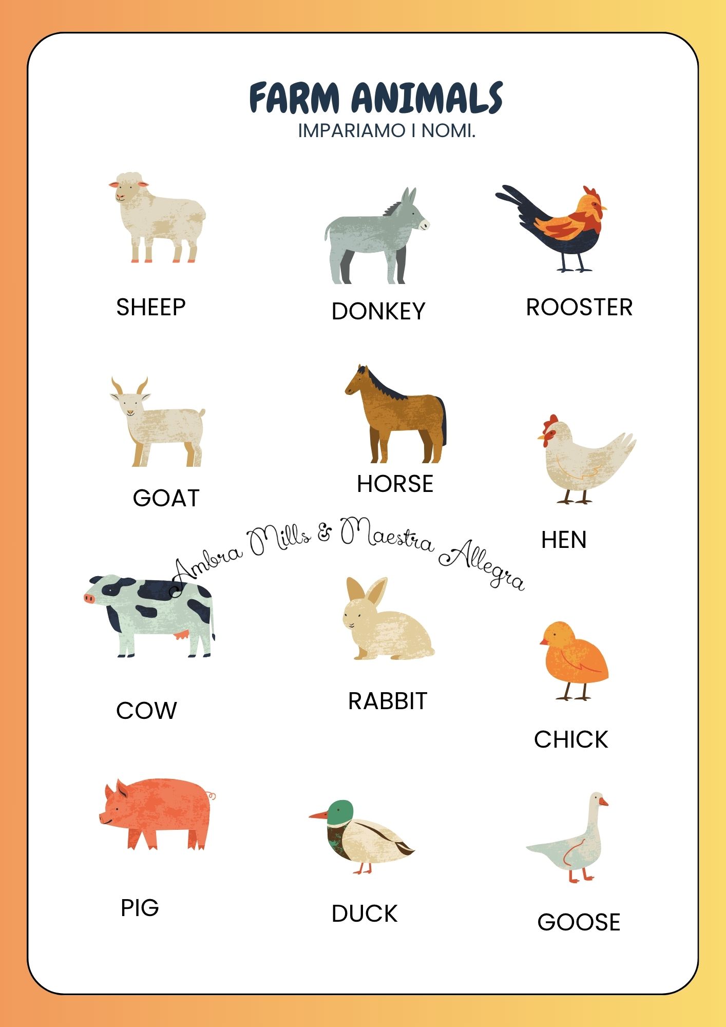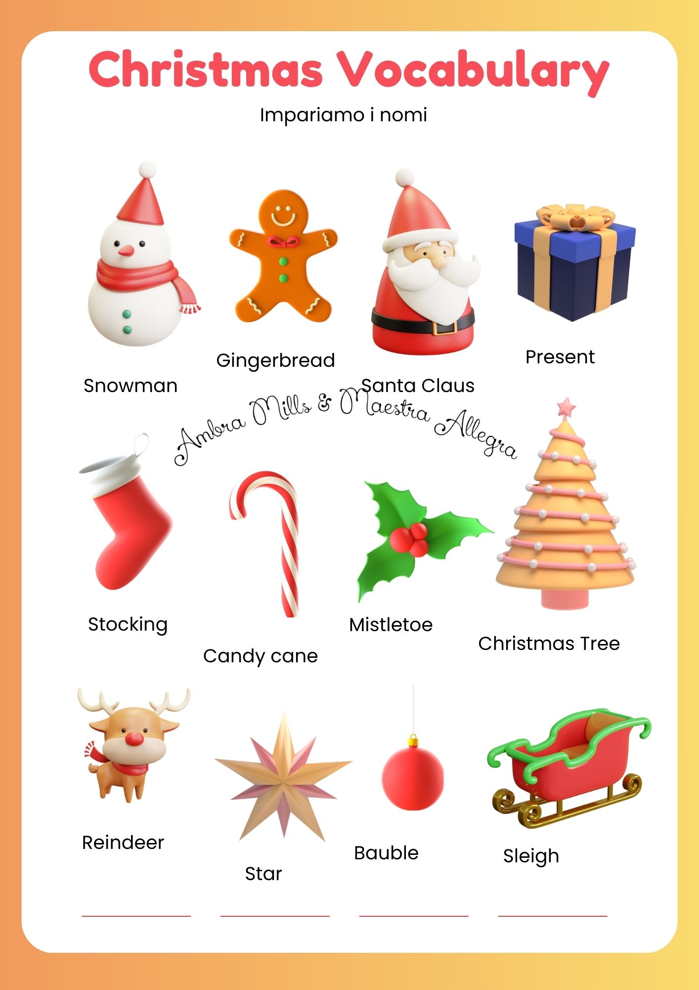 - Include attività su lessico di base e strutture semplici: saluti e presentazioni, numeri, oggetti della classe, parti del corpo, emozioni, animali, stagioni e festività, con proposte CLIL.