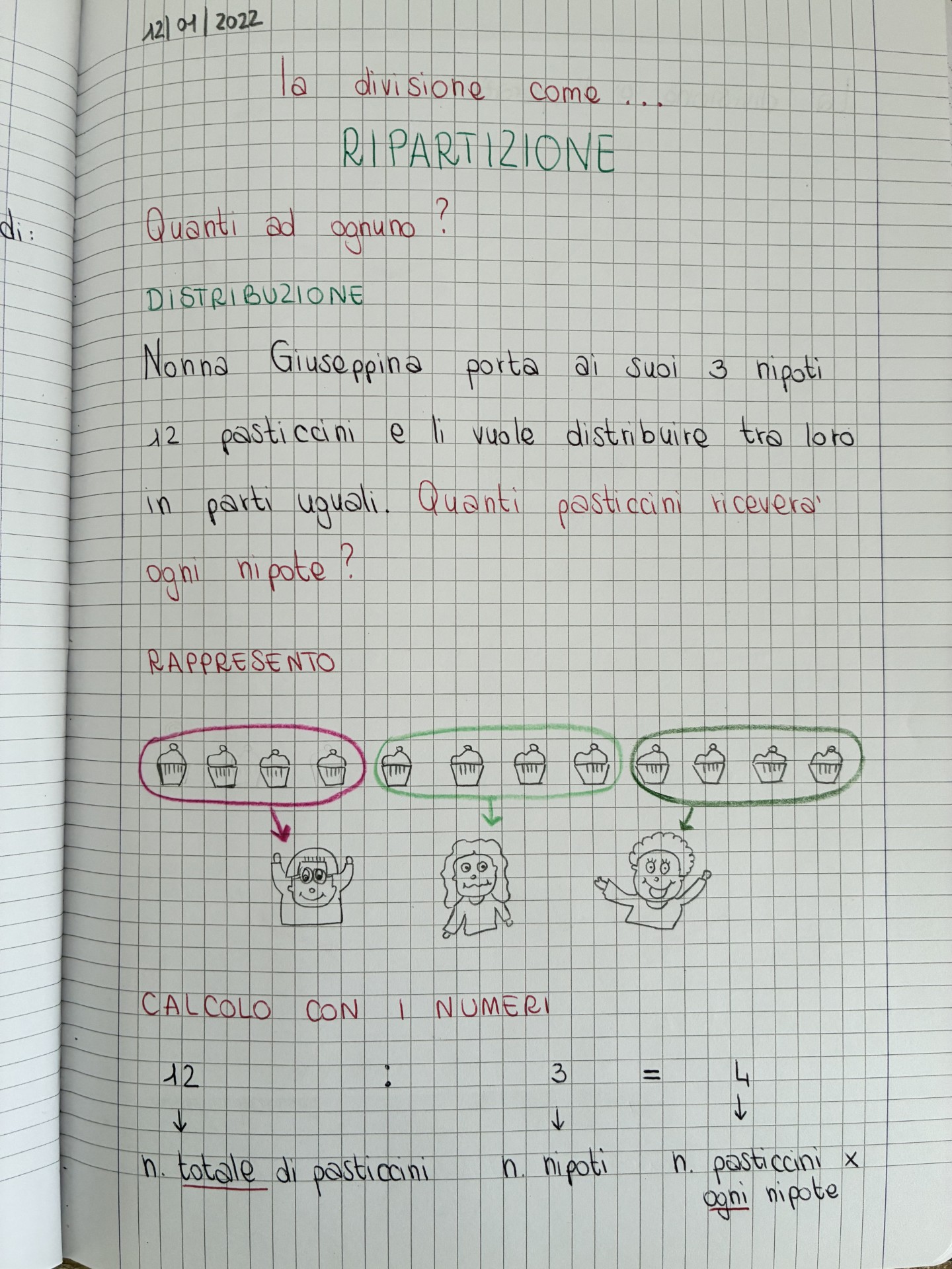 - La divisione come ripartizione e contenenza: I tuoi studenti esploreranno il significato della divisione, imparando a distinguere quando si tratta di distribuire in parti uguali (ripartizione) o di raggruppare elementi (contenenza).