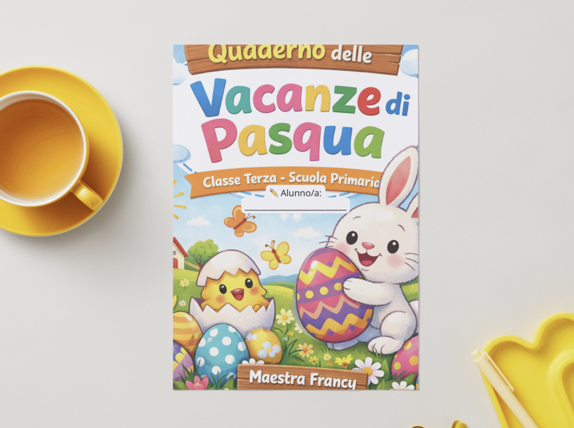 20 PAGINE Questo quaderno delle vacanze di Pasqua è perfetto per i tuoi alunni della terza classe della scuola primaria. Li aiuta a mantenere vive le loro competenze in modo divertente e stimolante durante la pausa. Ecco cosa scoprirai in questo materiale: Lettura e Comprensione: Una storia coinvolgente, “Il Pulcino Esploratore”, che invita i bambini a leggere con attenzione e a rispondere a domande mirate. Questo li aiuta a sviluppare la capacità di comprendere i testi. Produzione Scritta: L’attività “Crea un testo” stimola la creatività. I bambini possono raccontare le loro esperienze pasquali, usando parole utili suggerite per arricchire la loro espressione. Grammatica e Ortografia: Con “Occhio all’apostrofo”, i tuoi alunni imparano a usare correttamente l’apostrofo in modo interattivo, eliminando l’errore in un testo divertente. Scrittura in Corsivo: La sezione “Ricopia questo testo in corsivo” offre un’ottima opportunità per esercitare e perfezionare la scrittura a mano, con un testo significativo e bello. Poesie e Rime: Due allegre poesie, “Gabby gioca e sorride” e “Gabby cerca le uova di Pasqua”, aggiungono un tocco di leggerezza e incoraggiano la lettura espressiva e la memorizzazione. Con questo quaderno, i tuoi studenti rafforzeranno importanti abilità: Migliorano la comprensione del testo e l’analisi delle informazioni. Sviluppano la capacità di produrre testi creativi e coerenti. Consolidano le regole grammaticali, in particolare l’uso dell’apostrofo. Perfezionano la fluidità e la correttezza della scrittura in corsivo. Ampliano il loro vocabolario e la loro espressione linguistica in un contesto festoso.
