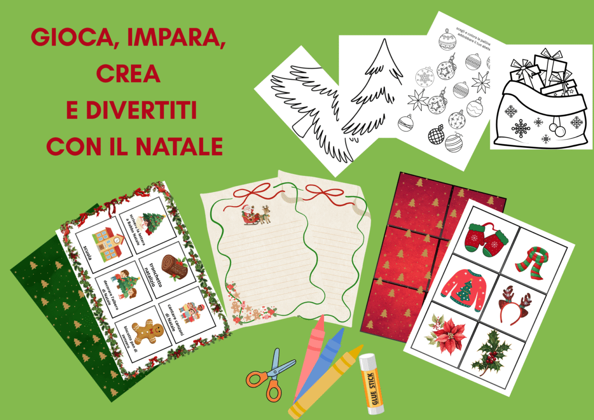 Un kit creativo e didattico pensato per bambini dai 3 agli 8 anni, perfetto per vivere la magia del Natale attraverso giochi, attività manuali e momenti di apprendimento divertente.