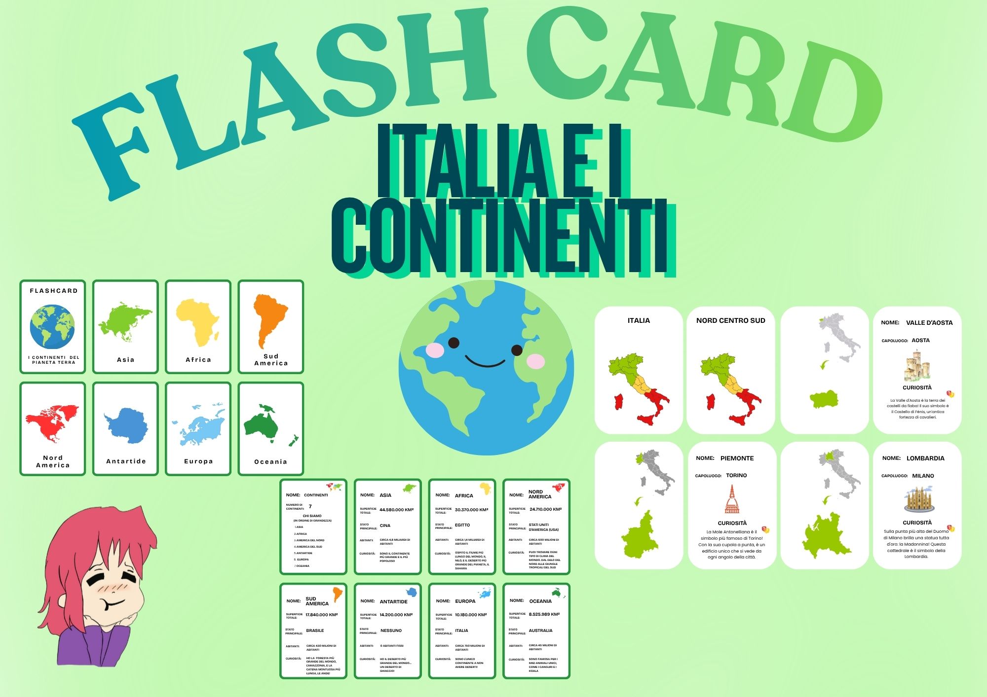 regioni d’italia e continenti Flash cardsDigitale